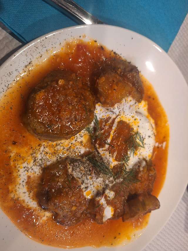 - Aubergines en rondelles, yaourt et sauce