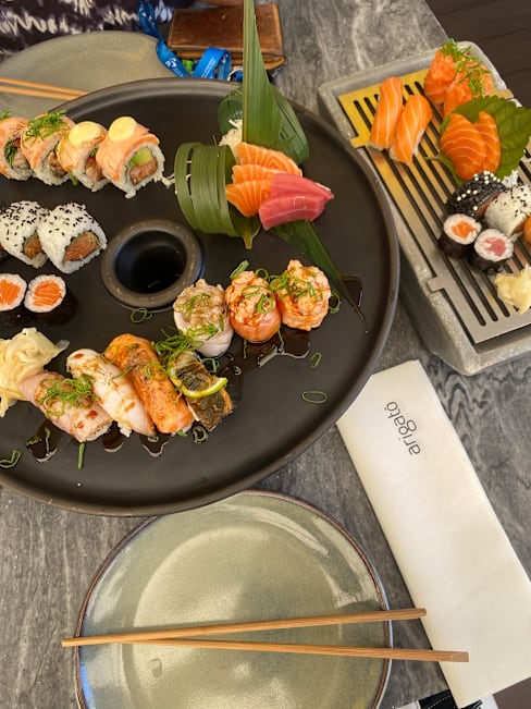 6.5/10If you’re looking for a sleek lunch spot in Lisbon’s Parque das Nações, Arigato delivers exactly what you expect: clean lines, a buzz of chatter from nearby offices, and sushi that’s fresh, reliable, and clearly popular with the weekday crowd. It’s the kind of place where deals get signed over nigiri, and where the lunch menu keeps everyone moving back to work on time. The atmosphere is excellent—bright but not sterile, modern without feeling soulless. It’s a restaurant that knows its role and plays it well. Still, I wish the service would take more risks. A good sushi chef or server should be part guide, part storyteller, nudging diners toward the chef’s favorites or something seasonal, not just handing over a laminated menu. And the “suggested” tip, still quietly tacked on to the bill, feels a little tone-deaf in a city where tipping is a choice, not an obligation. Come here for lunch, enjoy the fish, soak in the energy of Lisbon’s glass-and-steel waterfront.