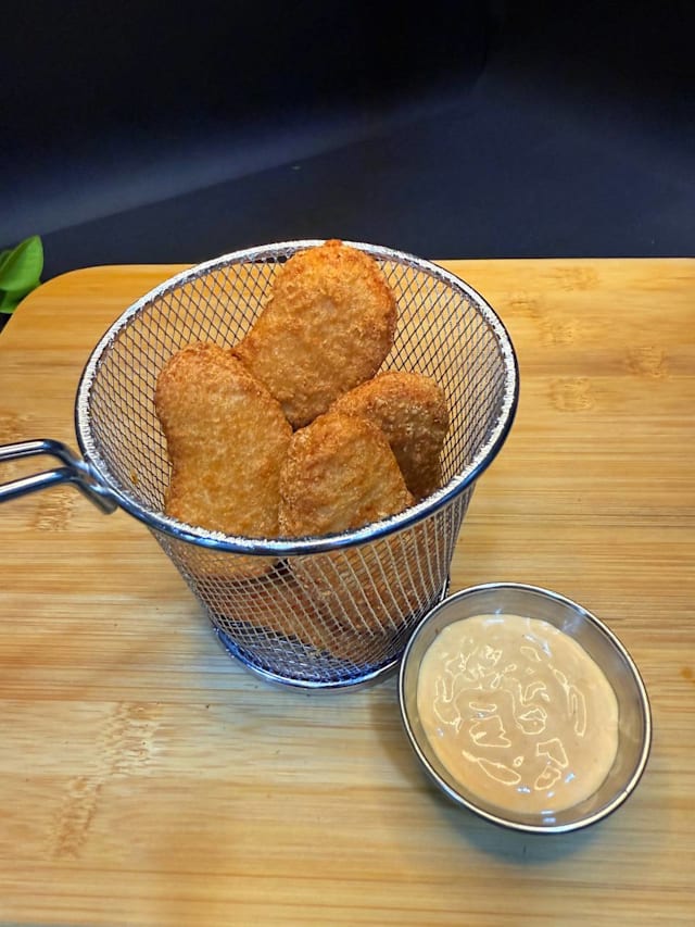 Nuggets de pollo, doble cheddar, lechuga, tomate, salsa mayonesa