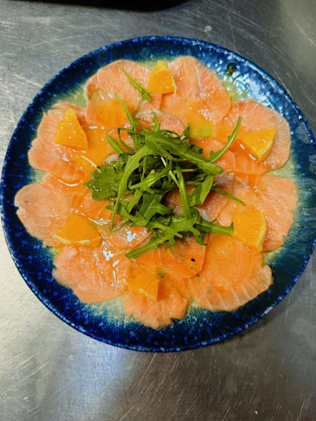 - Carpaccio de salmón con salsa naranja