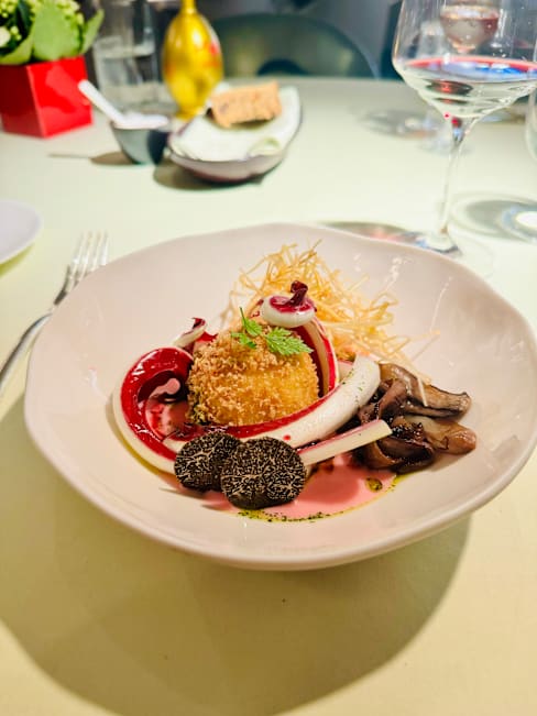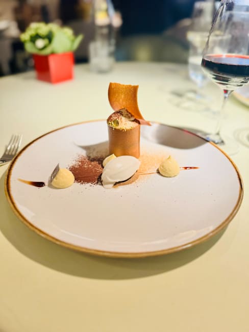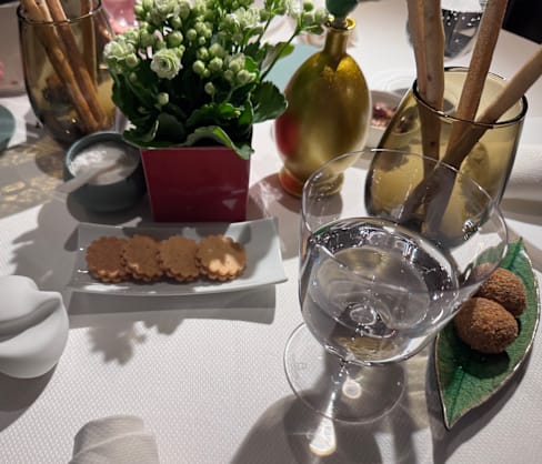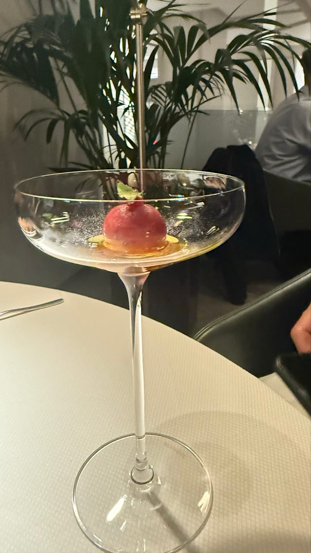 4.5/10I felt l was in the diffusion range. Our cocktails took 20 minutes to arrive and only after, l reminded the staff that we were waiting for them; we were the only people in the restaurant so l am not sure what happened there. . My husband's margarita was good but my whisky sour had no foam so l sent it back- no complaints. My starter was delicious and fresh with zingy orange though my husband's risotto which was perfectly cooked was a little too sweet. Our mains were just dry - l know gurnard is a dry fish but my husband referred to it as..hairy..just over cooked. My cannelloni, looked incredible but just dry and dull, lacking any...panache. We wanted to leave but thought we would give pudding a try, so we opted to share a chocolate tart- a work of art arrived at our table but again it was dry. By now were were joined by another 2 dinners- it is fashion week and art Paris week so where were the glitterati? Did they know what we did not? The staff tried really hard and were charming but the food is greatly over priced and not worthy or. Michelin recommendation.