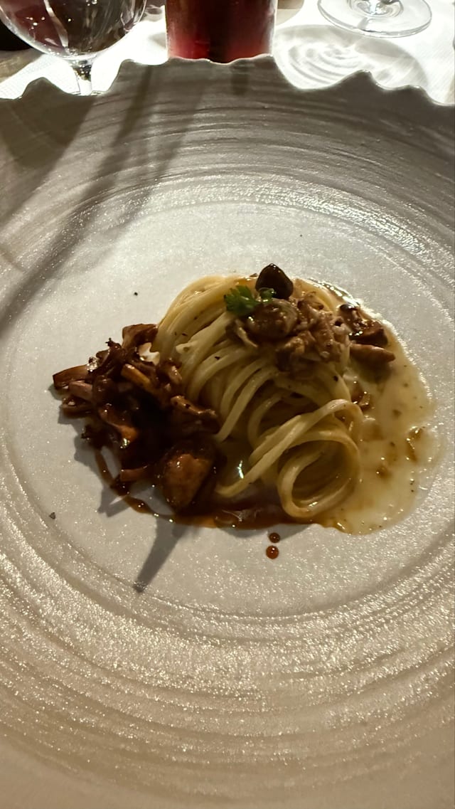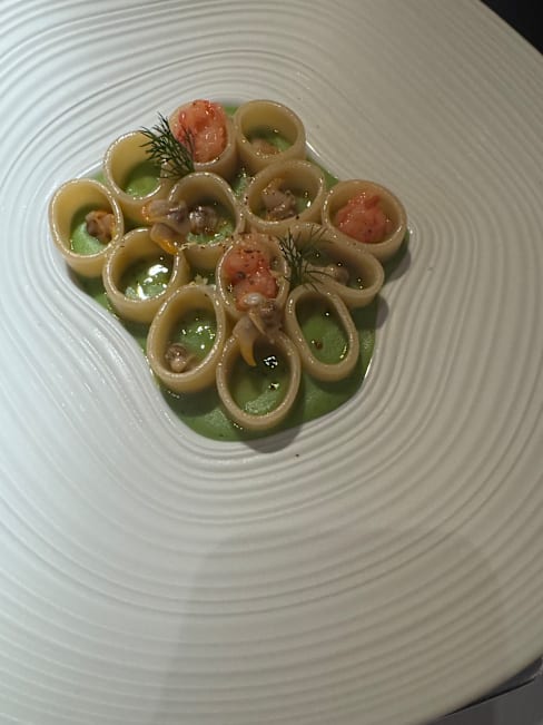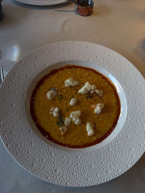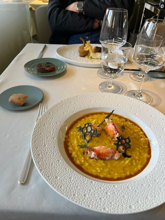 5.5/10The lobster was overcooked, so paired with Al dente spaghetti meant the the dish was too chewy to eat. Taste wise, basic tomatoe/ seafood sauce, could have done with another dimension. Olive oil was very tasty and nutty- the highlight of the meal. We expected a lot better from a Michelin restaurant.