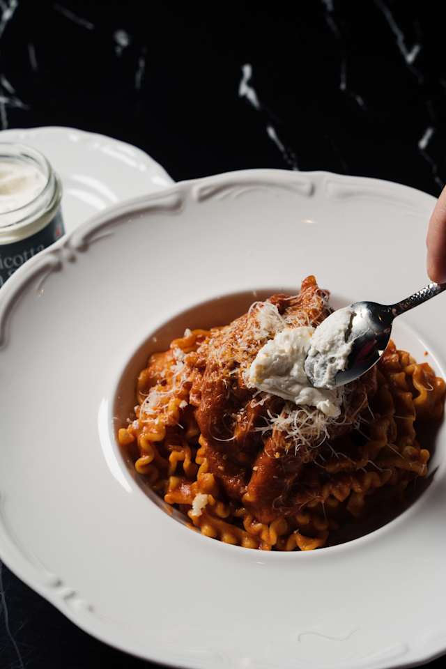 - Manfredi al Ragù di Mammà con Ricotta in Salvietta