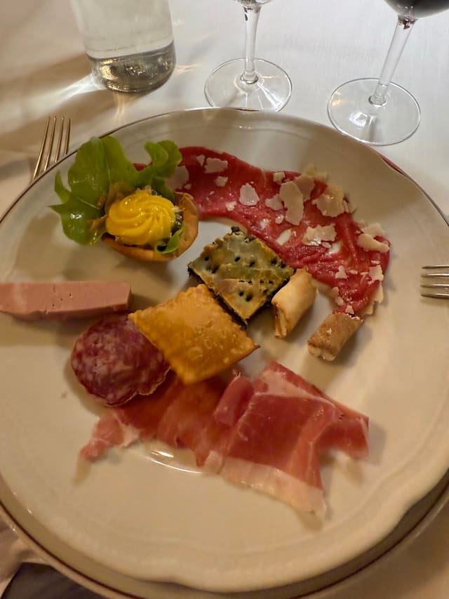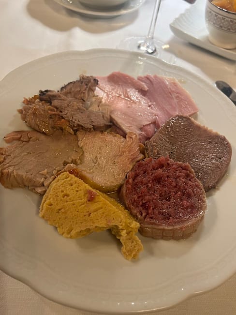 3.5/10An old institution which is extremely proud of giving a michelin star no clue, why they have one. The food is typical family style food auctioned of carts. The quality is from a gourmet point of view unexceptable. Never a change in the menu. For their defense: dinner is not expensive Appetizer is 16 euros Pasta is about 16 euros Mains are in the 20 to 30 euro range Huge younv wine list, really unexpensive. A great restaurant, which disappoints in its quality.