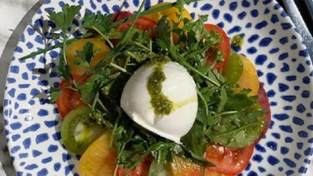 Mozzarella, Tomates, Thon à l’Huile d’Olive, Pickles d’Oignons Rouges et Caramel Balsamique