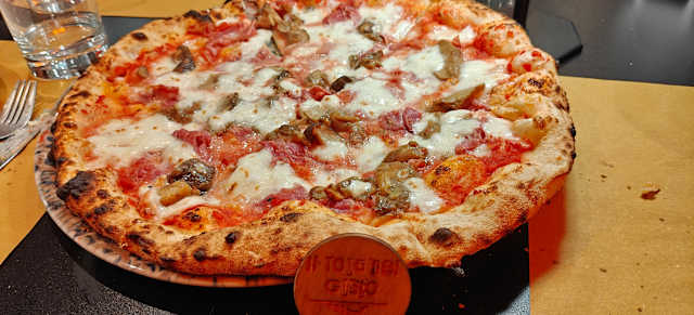 - Pomodoro, basilico, funghi porcini, mozzarella, pancetta