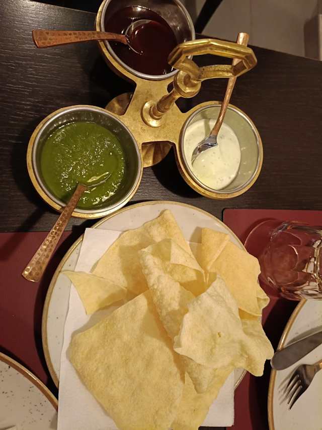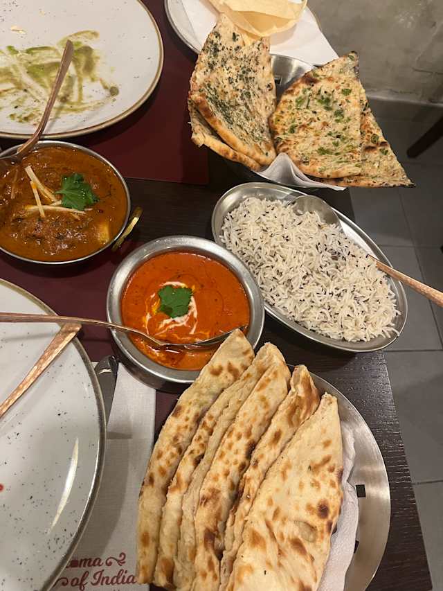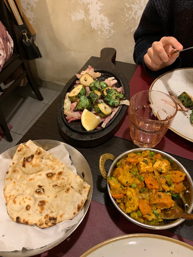 7.5/10We had butter chicken and lamb saag along with rice and naan bread and chicken from the tandoor along with the appetiser share plate for two which was enough for the three of us. The portions were a good size and the large cobra beer was just the drink to wash it down with. Prices were very reasonable and we enjoyed our evening there
