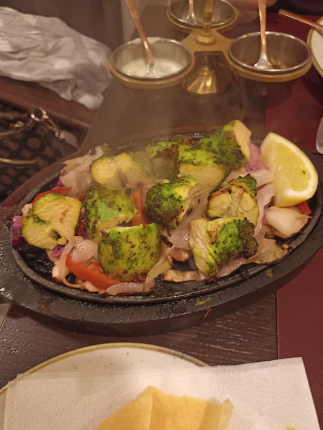 - 2pz tandoori pollo, 2pz pudina tikka, 2pz red murgh tikka, 2pz jhinga, 2pz lamb chopped, 2pz sheek kebab chicken
