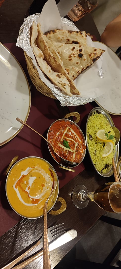 7.5/10We had butter chicken and lamb saag along with rice and naan bread and chicken from the tandoor along with the appetiser share plate for two which was enough for the three of us. The portions were a good size and the large cobra beer was just the drink to wash it down with. Prices were very reasonable and we enjoyed our evening there