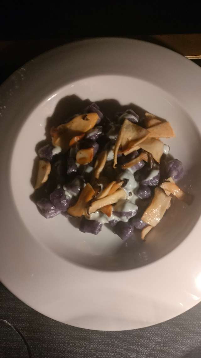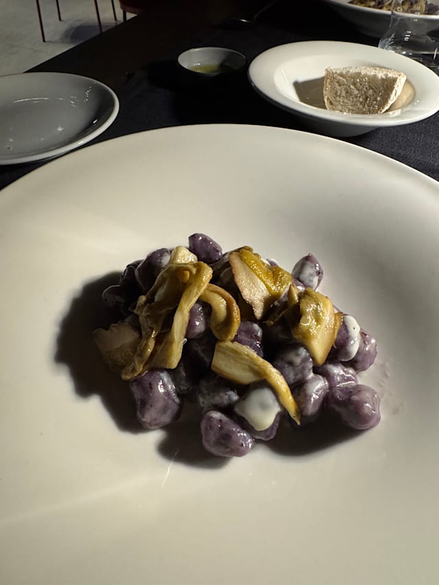 Gnocchetti di patate con crema di piselli e seppie scottate