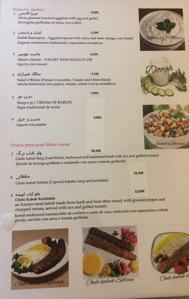 10/10We went for the Iranian food and found the offer really refreshing for Cascais downtown. The food was good and the waiter explained what everything was and was really nice. The decor was also nice.