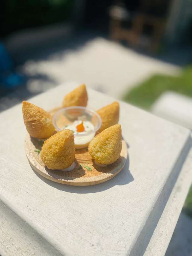 - Sabores: frango, camarão ou palmito, tarte salée: poulet, crevettes ou cœur de palmier.