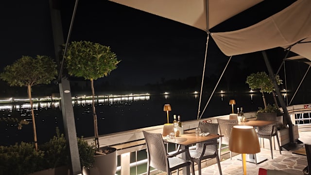 10/10Superb restaurant. Food was amazing. Tables on a lovely lake. Waiters very attentive. What’s not to love!