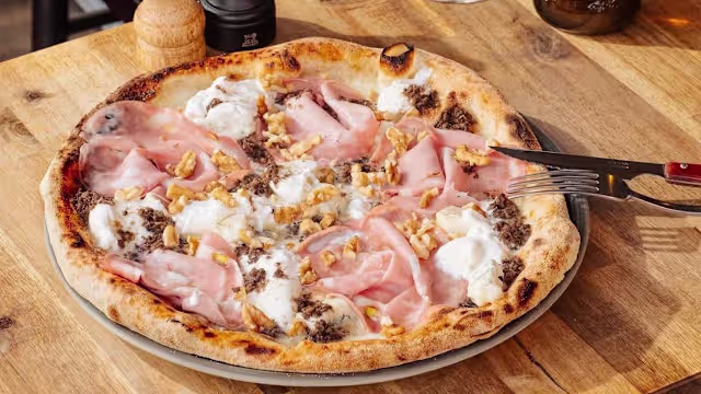 - Mozzarella, champignons, crème de truffe noire, grana padano