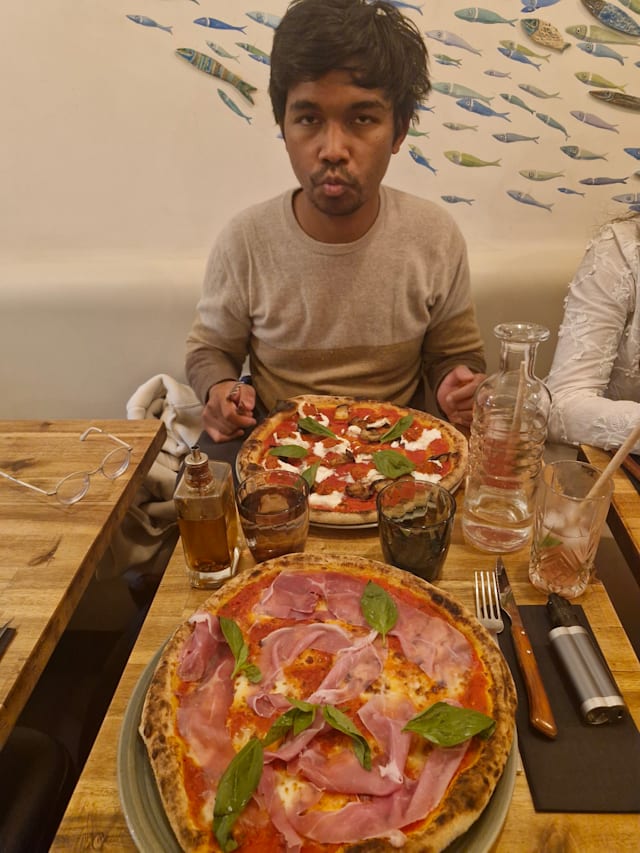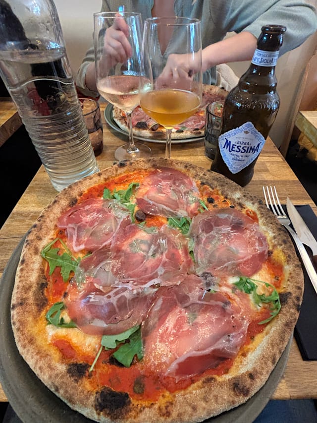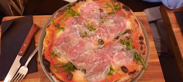 10/10Delicious pizza and lovely staff. The pizzas have a wonderful and tasty thin crust with excellent toppings but they are large.