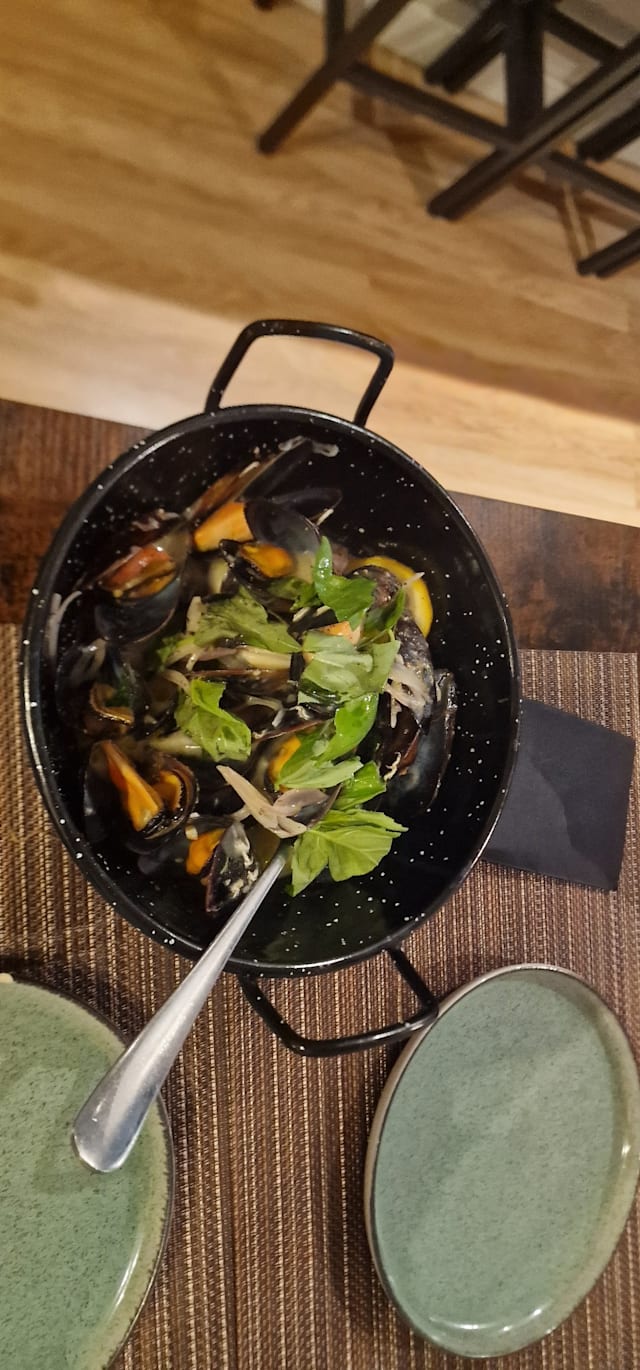 8/10We live nearby and wanted to try this fairly new restaurant. The interior is very casual with high chairs and tables, unless you are part of a larger group, in which case there's a dining area with regular chairs and tables. Hennessey, our server, was delightful and service was prompt. First, we had an Almejas (clams) appetizer in a delicious broth. Then, we had the Senorita paella, which was made for two. It was very tasty, though a tiny bit salty for me. My husband enjoyed it. We shared the chocolate coulant dessert, which was scrumptious. The experience was very pleasant. We both thought it was quite overpriced. The above along with 2 beers and 2 glasses of wine came to 95E. My guess would have put it closer to 60E. The price would make us think twice about returning, though the experience was pleasant.