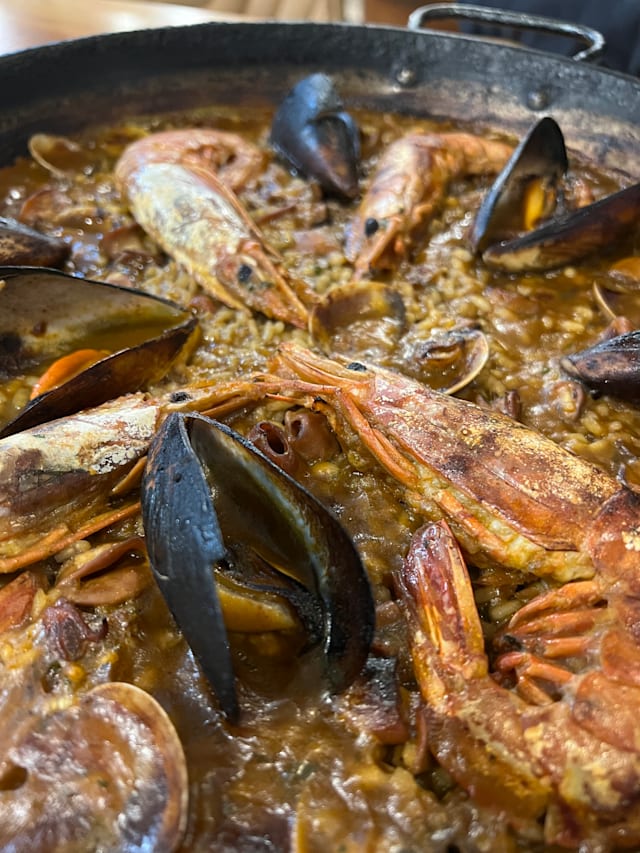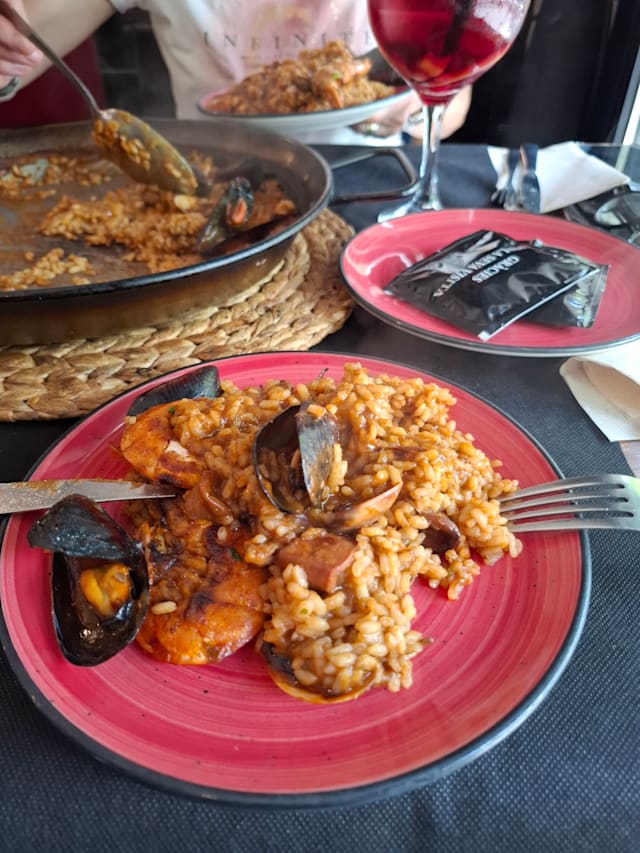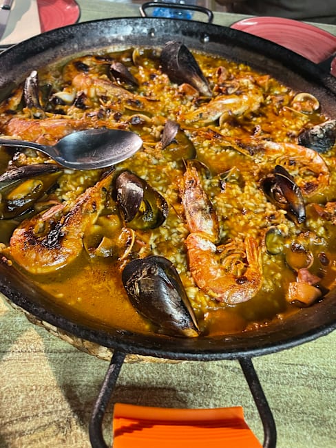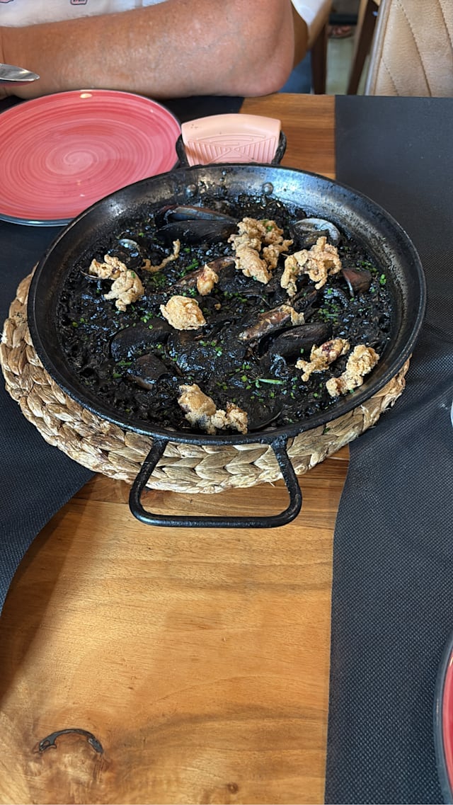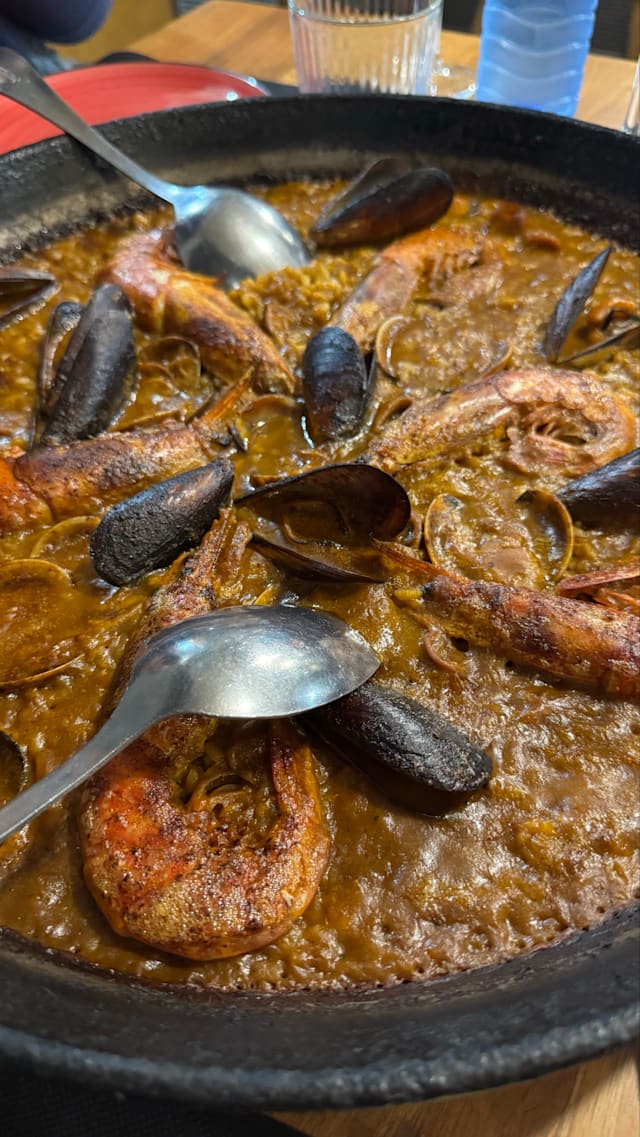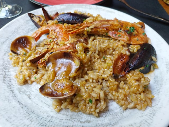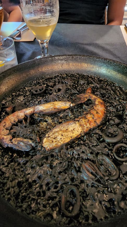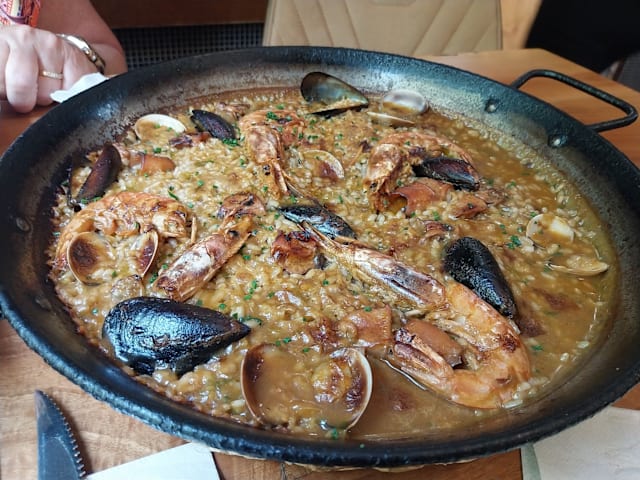 10/10Very good, fresh, traditional Arroz Negro as well as Paella. 1 person Paella was just sufficient for 1 person. Price for 5 paella 5 croquets 1 bottle of wine and 1 bottle of water 117 Euros with 30% discount for the fork app arriving at 88 Euros (not everything included in discount).