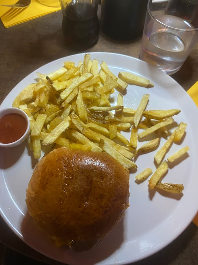 6.5/10The burgers were small and tasted OK. We were a party of 5 but were sitting at a table for 4 people so a bit uncomfortable. They brought our starter and mains together.