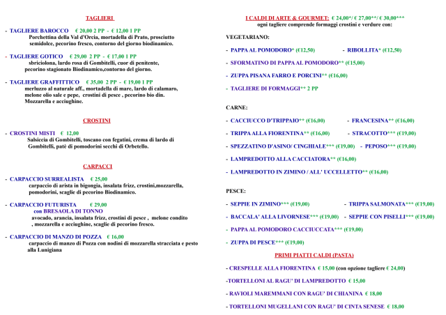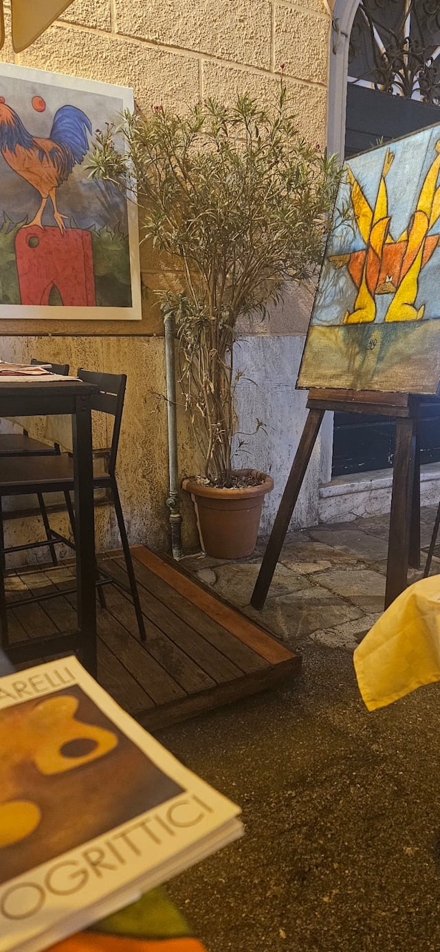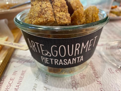 Abbiamo all'interno del locale,dietro una grande vetrata,lo Studio d'Arte operativo dell'Artista Andrea Saltarelli,visitabile su richiesta.Il locale stesso è la sua Galleria espositiva,dove Arte e Cibo,qui,si incontrano nel Bello e nel Buono, per farvi fare un'esperienza diversa e unica in Italia, u...