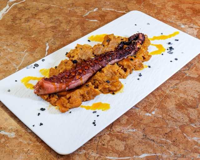- Pulpo sobre cama de patatas revolconas