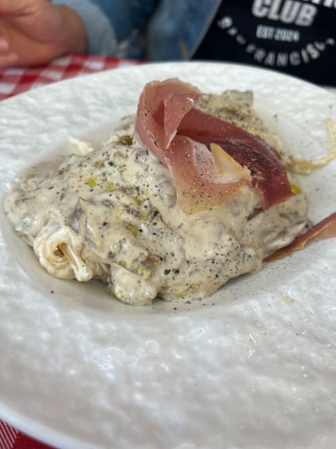 9/10Very good apetisers, very good dessert, although the pasta alla forma didn’t had any flavour, the pasta was well cooked but the sauce was very thick, with a good amount of mushrooms, the olive oil with truffle flavour was a flop. Usually this dish is heavy, this one here is very light on the stomach, even with the thick sauce.