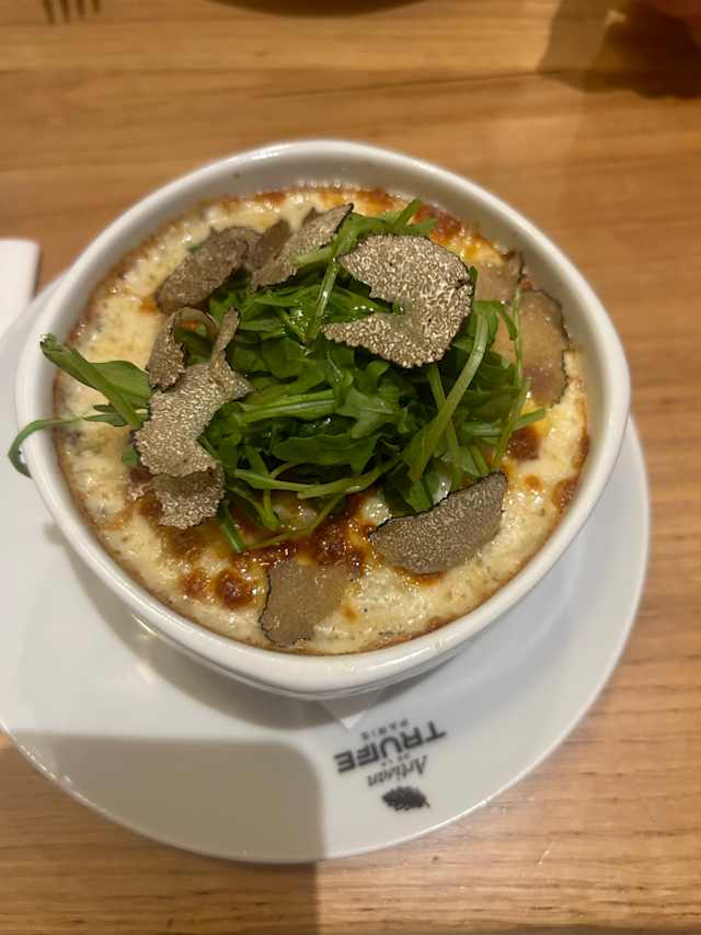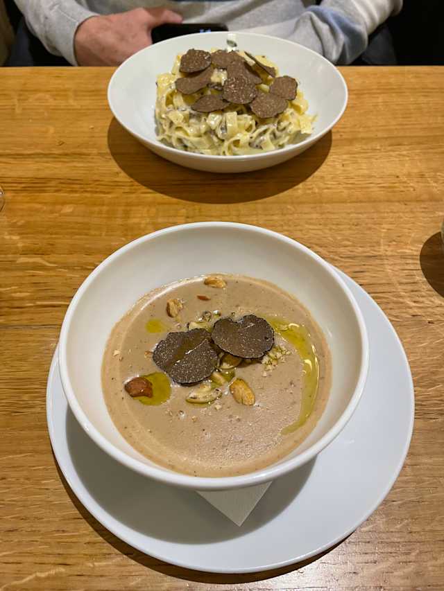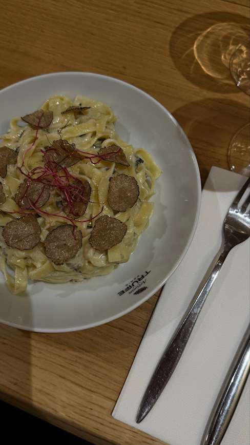 8/10Lovely atmosphere and good service. Though the pasta and ravioli weren’t al dente, they did have a nice truffle flavor (the pasta lacked salt, while the ravioli were a bit too salty). The crème brûlée had a subtle truffle flavor, but was interesting.