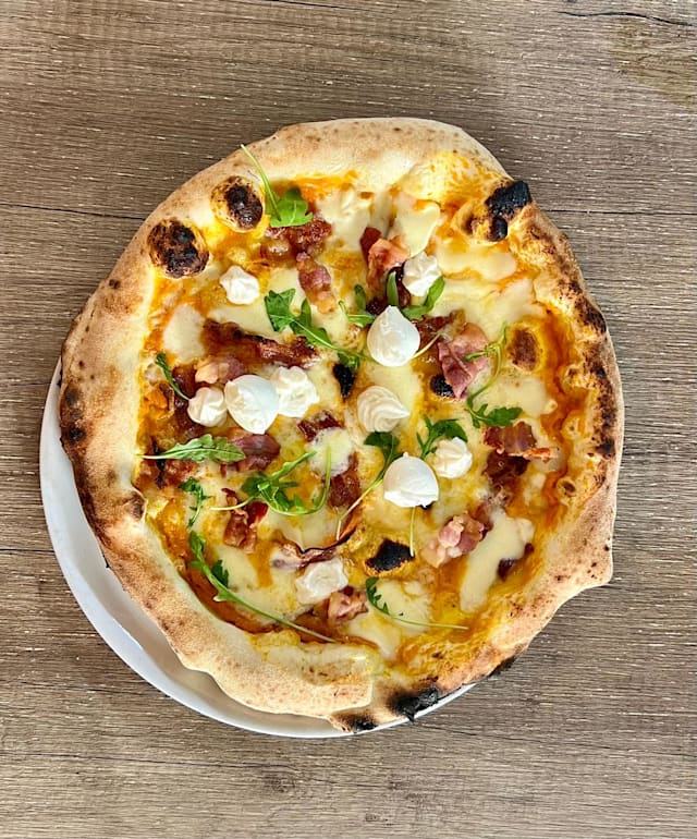Pizza bianca con scaglie cotte, prezzemolo e spremuta di limone