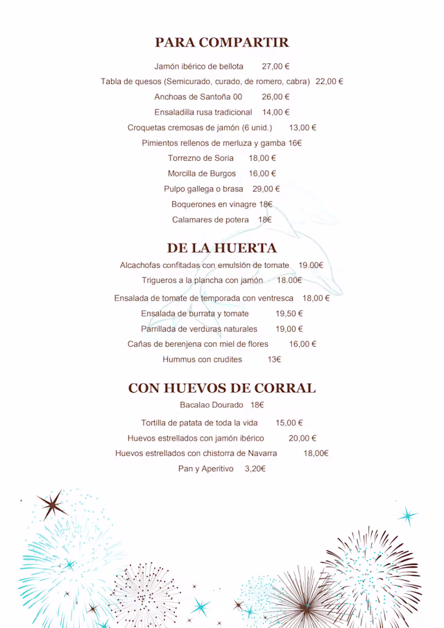 Menú del día€29 per guest