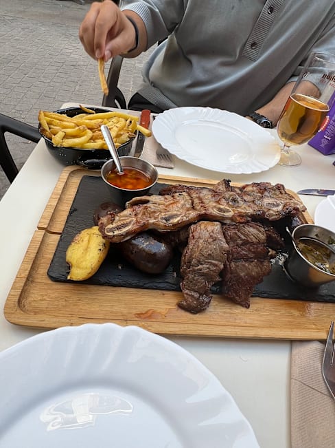 8/10Food 100% amazing. Very juicy meat. Medium rare was medium rare and not medium. However I got the starter after my main, it was a bit crowdy and no AC inside just a fan. All in all worth a visit just because of the meet but maybe more with friends or bigger groups than on a romantic date (I went with my friend). Would visit again in Madrid if I was close by!