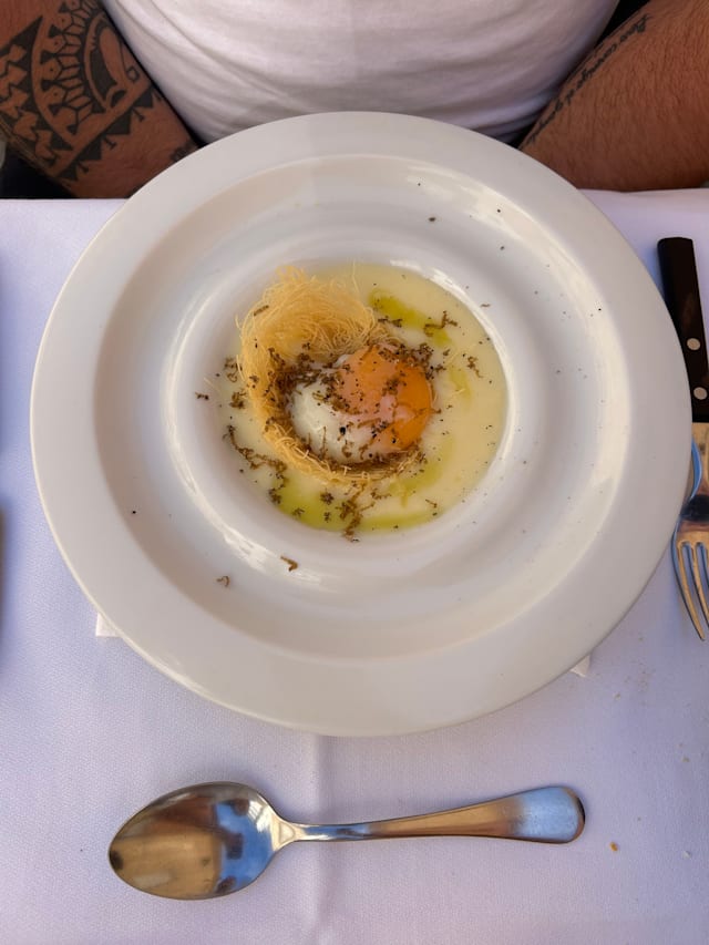 2/10To be fair I didn’t even get to the food ! I sat, was the only person in restaurant at 8.15pm. Waited several mins for waiter to finish some personal phone conversation then he came to my table , coughed over me and presented me with a piece of paper with a QR code . Speaking no English I didn’t even receive my glass of wine while I was looking at the menu (trying to translate it) - he kept hovering and presenting his own mobile phone screen at me which showed the price of the menu with wine included. He was intent on me responding to the price . I asked again for the wine and I got the phone screen. A quick visit to the bathroom (very poor , no tissue etc) and I left .