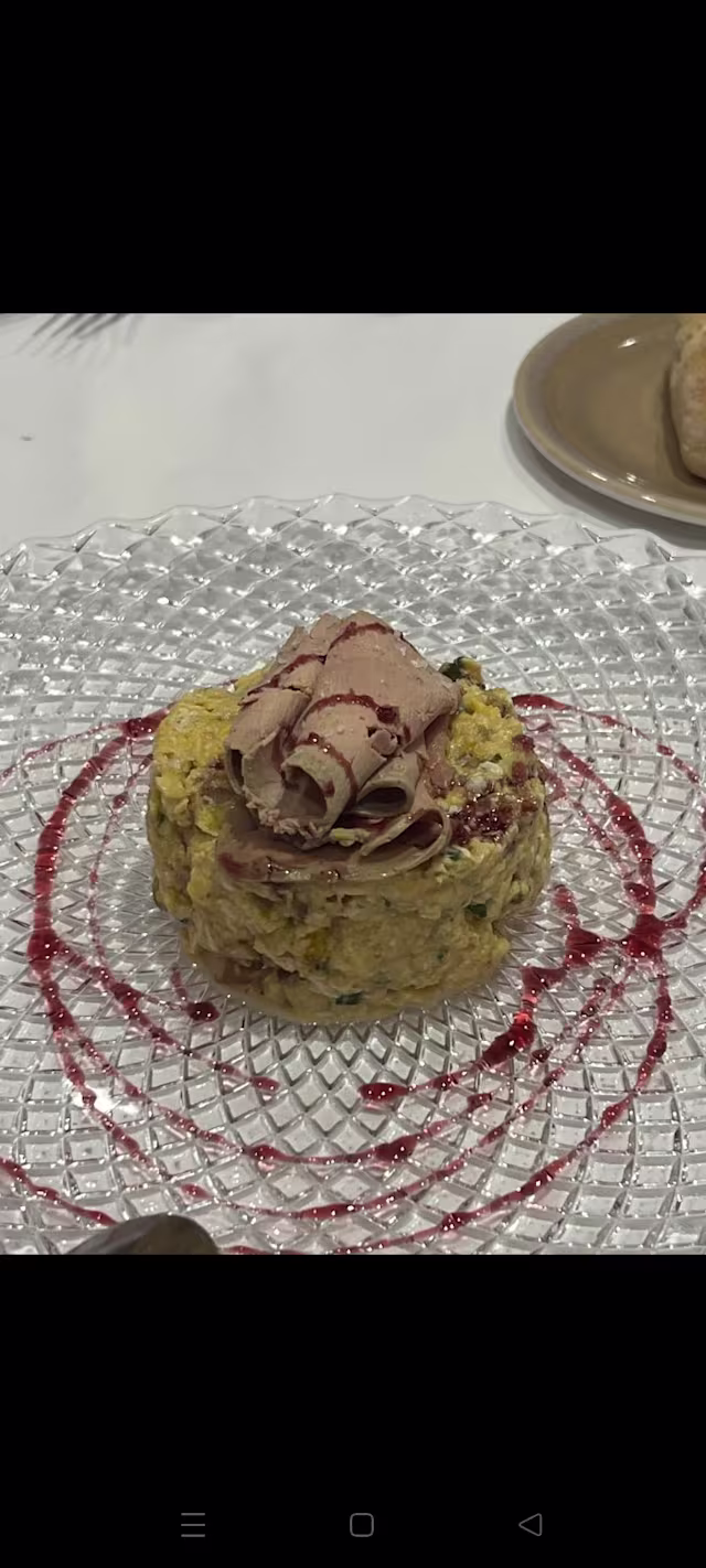 - Salteado de habitas, morcilla, piñones, pasas, cascara, huevo