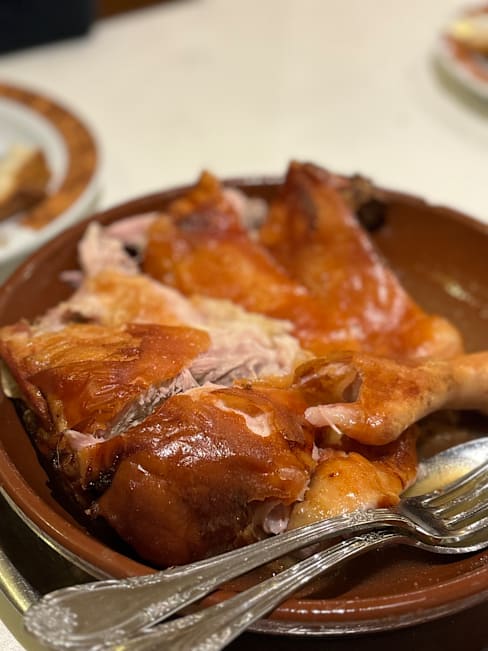 10/10The suckling pig was excellent. They also got half bottle of wine - perfect for the two of us. Service was also very good.