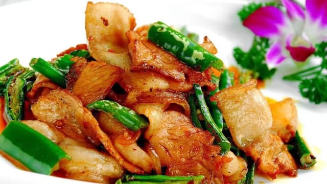 Porc fumé aux pousses d'ail