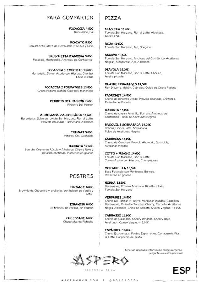 Can I reserve at Aspero - Essència crua right now? Does Aspero - Essència crua have special offers currently? How is Aspero - Essència crua rated? What type of cuisine is served at Aspero - Essència crua? Is Aspero - Essència crua accepting TheFork Giftcards? Is Aspero - Essència crua dog friendly?