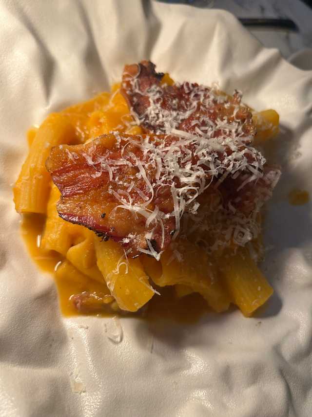 - Rigatoni van pietrabianca vesuvio zuivel met black angus ragout met parmigiano reggiano dop-mousse