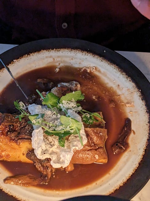 7.5/10I started with PARMIGIANA DI MELANZANE SCOMPOSTA. Even though I think the dish was a little under-salted, I did enjoy this starter a lot. My main dish (INVOLTINO DI PASTA FRESCA RIPIENO DI FUNGHI MISTI CON LA SUA DEMI GLACE) came out real nice too. I’m not a fan of using QR guided menus in a restaurant, that felt a bit odd. Major downside to our experience was the bad sewer odor throughout the restaurant…