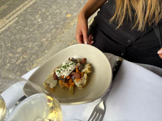 10/10Just lovely! The service was impeccable, friendly and efficient, the food, delicious. I had white asparagus with sauce mousseline followed by a generous portion of tender lamb that was good, albeit slightly under seasoned. It was served with gratin de patate douce that melted in my mouth! But the show-stopper was the pavlova aux fraises. Encroyable! Compliments to the chef! I highly recommend Astier. I’ll have lunch here next week.