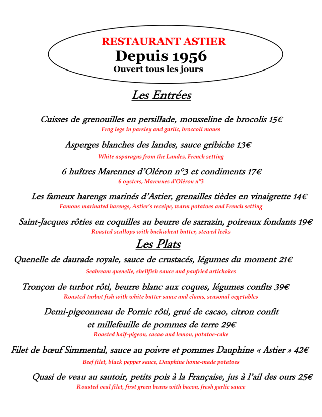 Dear Mr Biasi, It was a pleasure to welcome you at Astier yesterday at dinner time. Thank you very much for your very nice comment, we hope to welcome you soon again during your next stay in Paris. ASTIER