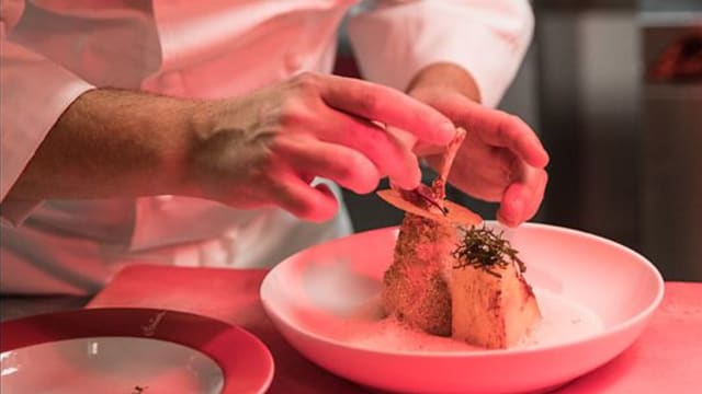 Quenelle de daurade royale, sauce de crustacés, légumes du moment