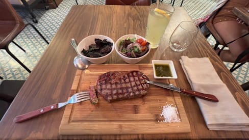 10/10They have two restaurant spaces next to each other. For lunch only the small one is open. Very helpful service and well seasoned steak.
