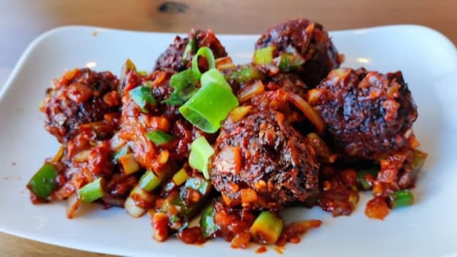 Deep-fried cauliflower florets marinated in Manchurian sauce & tossed with onions