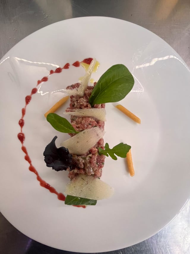 Tartare lardo di colonnata IGP e cipolle rosse caramellate