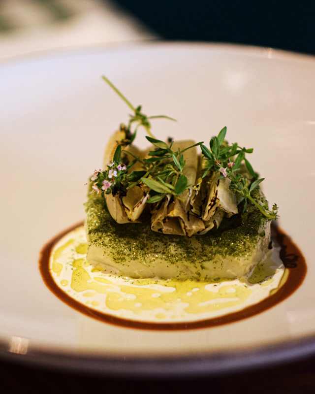 - Maialino marinato, fave, lardo e verdurine di stagione