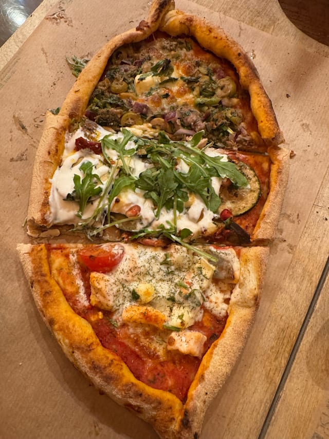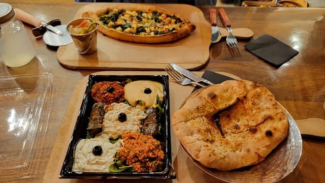 7.5/10Cute spot. We had the pizzas and the Mediterranean appetizer plate. Both very tasty especially the home baked pita bread that came with the plate of humus and other appetizers. For super casual I would recommend this spot.
