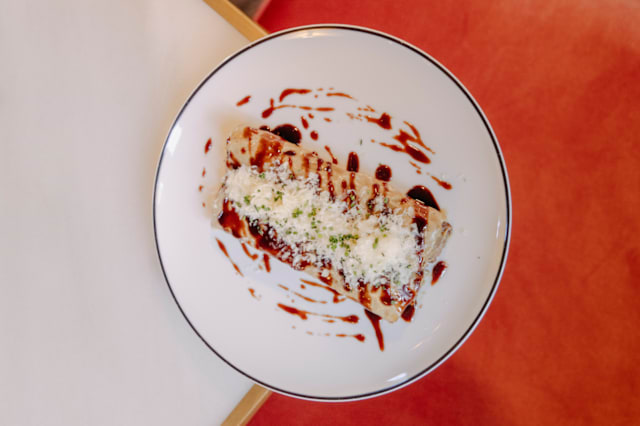 - Canelones de rabo de ternera con salsa de oporto y foie