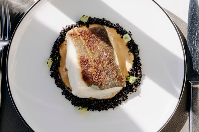 - Bacalao skrei con mole negro y quinoa tostada