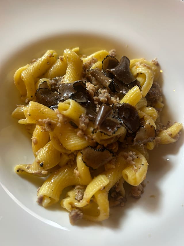 Maccheroni con ragù di cortile e tartufo nero estivo