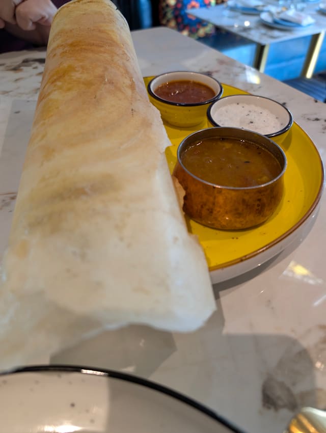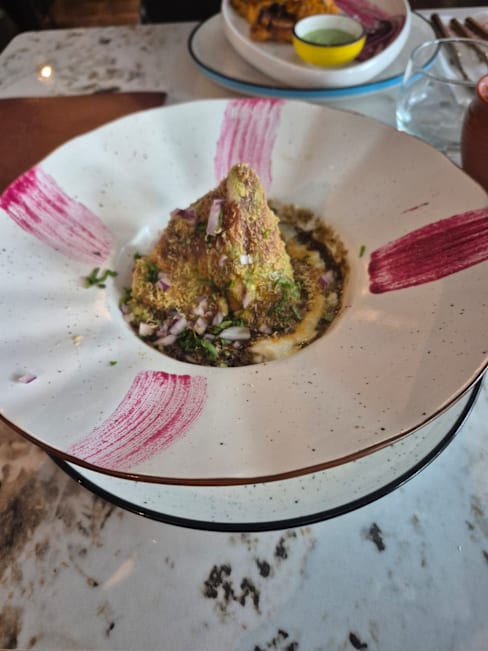 7.5/10The food was great, even for my very Dutch taste buds! I had the samosa and chicken tikka masala, garlic naan and it was served with some rice. It was worth the wait, because the service was terrible. The staff seemed terribly stressed and understaffed and apologized thoroughly. We didnt mind and they deserved the tips as honestly as far as we noticed, they tried their best with what they had. Water was served in plastic bottles which is unusual and the interior of the restaurant is absolutely hysterical with glass ceilings. Not a vibe you want on a romantic night out, but it was good enough for a casual outing. Could use a little update tho, at least match the pillows and decor with each other. 😂 The price was okay'ish, we would have ordered a desert too or one of their fancy drinks if the service wasnt so bad and slow. my advice; dont go on a Saturday evening!
