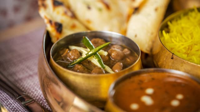 - Klein eiland van verwondering! Shahi thali veg bestaat uit verschillende kleine vegetarische curry's , naan , rijst , dessert , papadum en mango lassi.