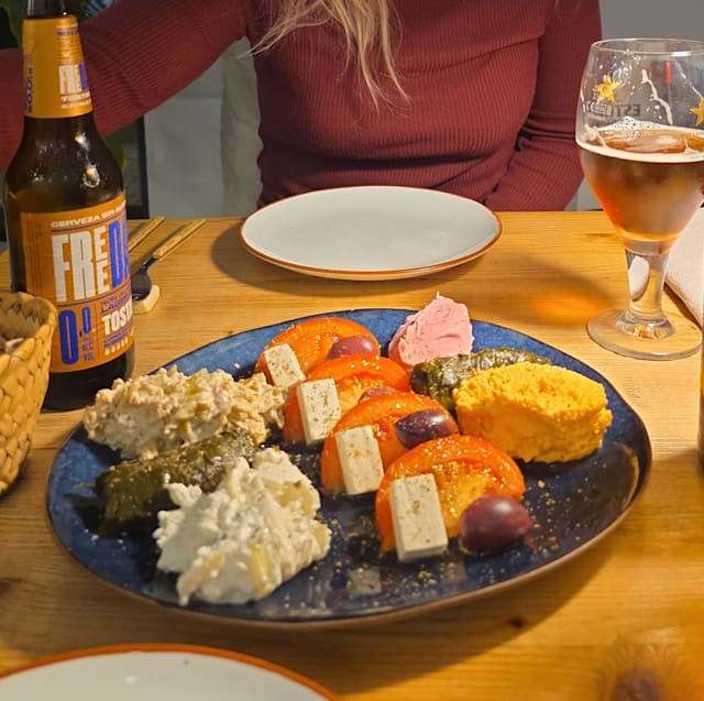 Feta a baixa temperatura, amb mousselina de tamarinde, amb frijol refrito, tahina i yuca cruixent